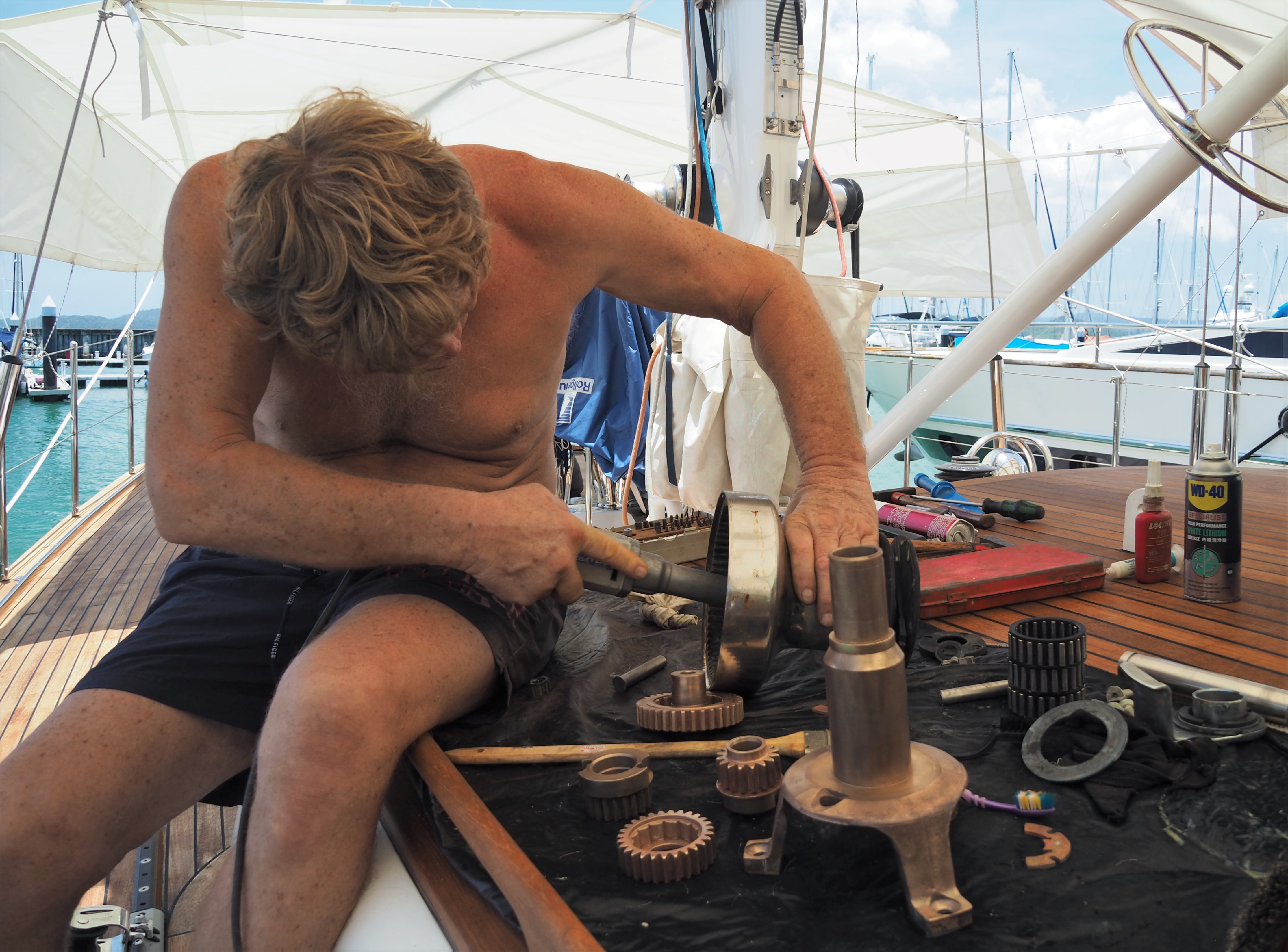 Viele Segler nutzen die Zeit, um ihre Schiffe instand zu halten. Auch Klaus war fleißig und beschäftigte sich mit der Überholung verschiedenster Teile am Schiff, die es oft schon lange nötig hatten.