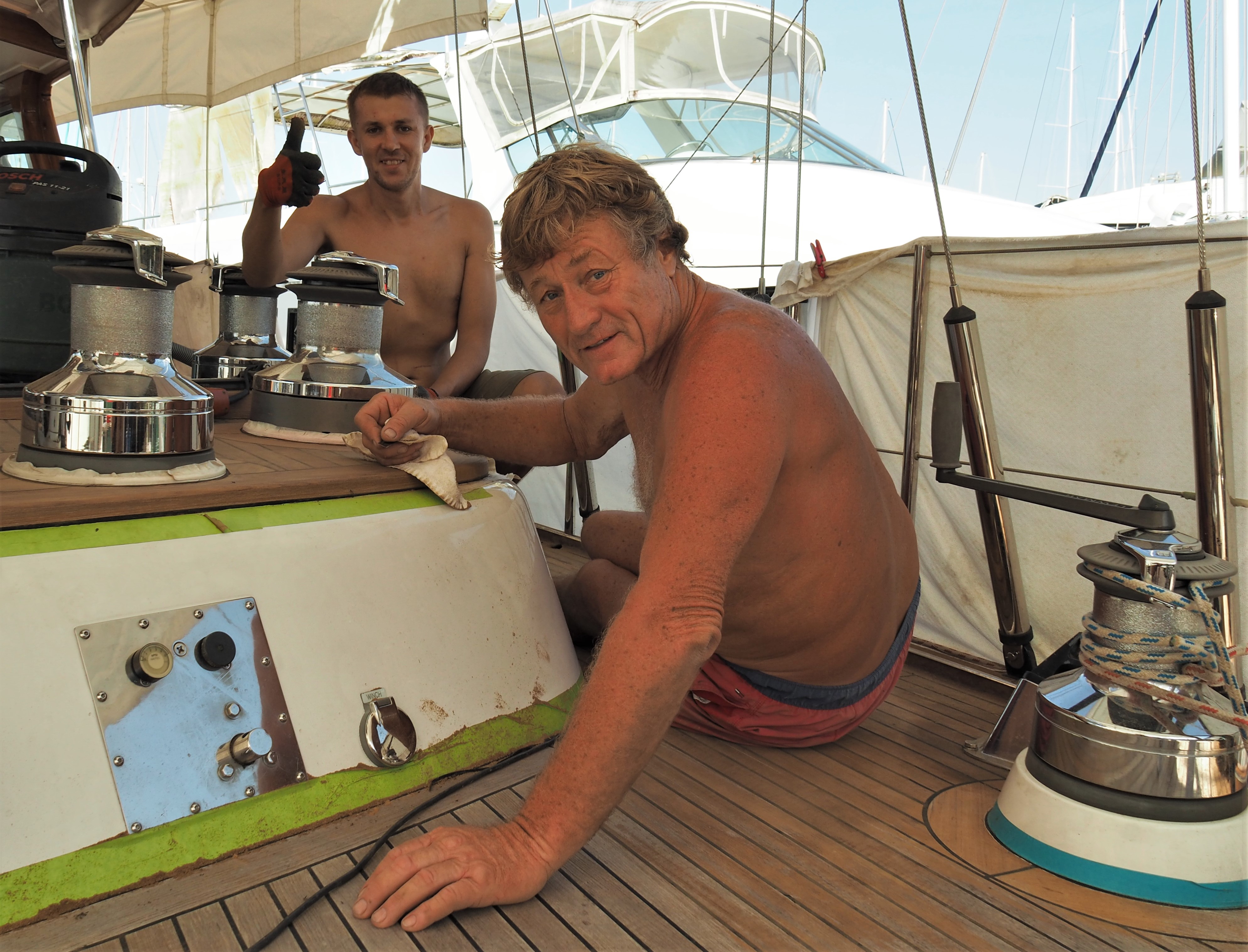 Viele Segler nutzen die Zeit, um ihre Schiffe instand zu halten. Auch Klaus war fleißig und beschäftigte sich mit der Überholung verschiedenster Teile am Schiff, die es oft schon lange nötig hatten.